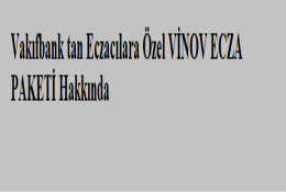 Vakıfbank tan Eczacılara Özel VİNOV ECZA PAKETİ Hakkında